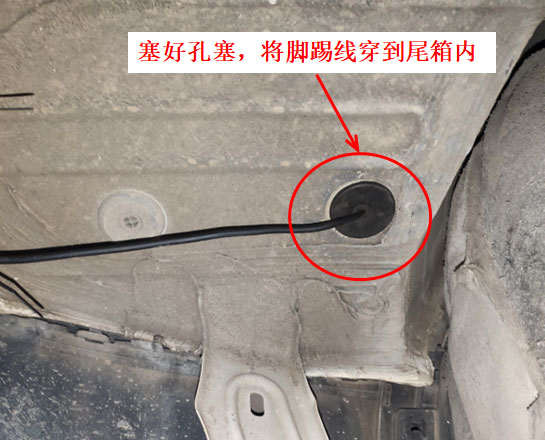 9、穿腳踢的通訊線到尾箱內(nèi)部,塞好孔塞。